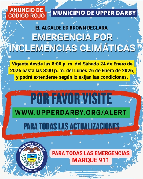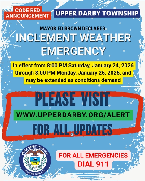Upper Darby Township, PA — Mayor Ed Brown has declared an Inclement Weather Emergency for Upper Darby Township in anticipation of hazardous winter weather conditions impacting the area.