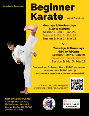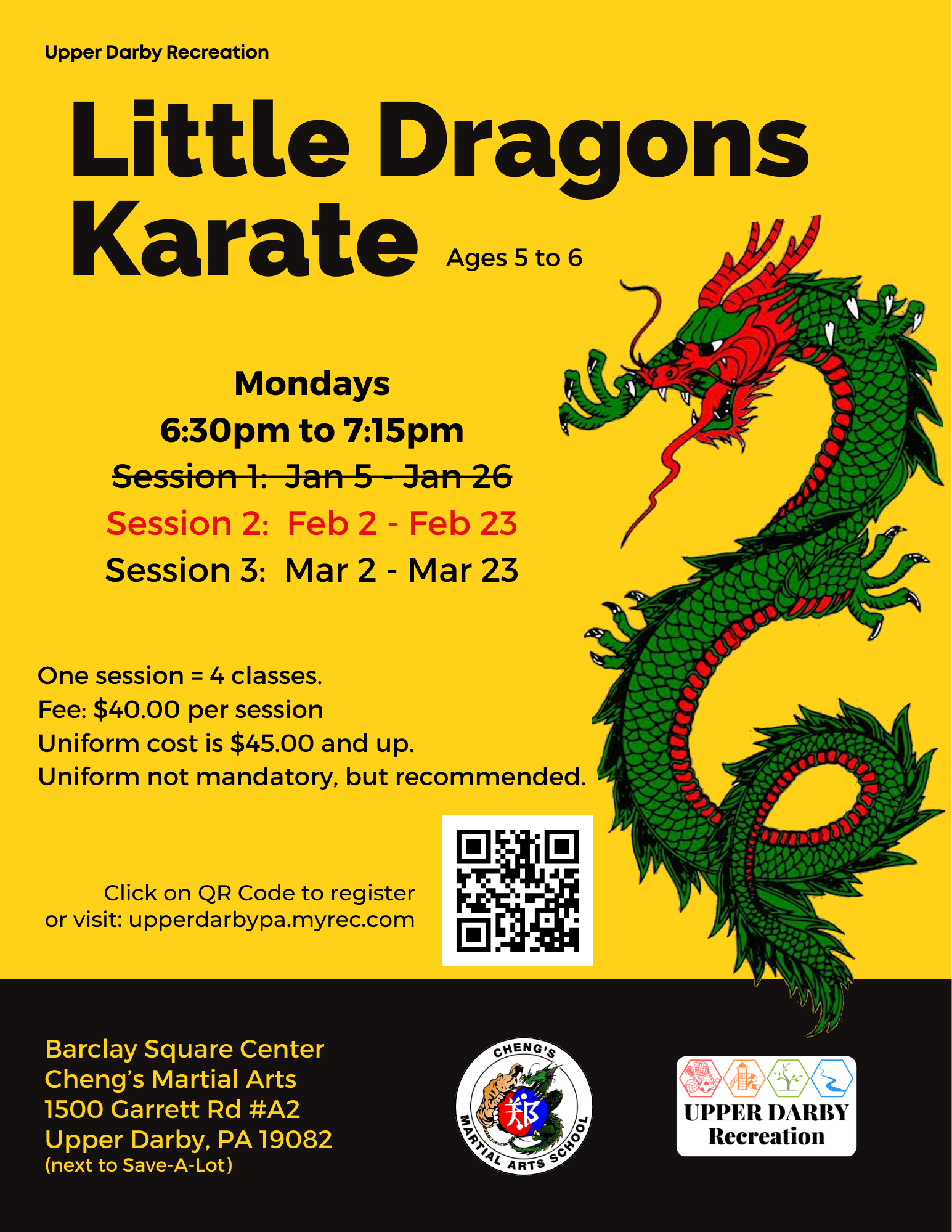 ![]() Little Dragons Karate for ages 5-6 Registration Link: upperdarbypa.myrec.com | ![]() Beginner Karate for ages 7+ Registration Link: upperdarbypa.myrec.com |