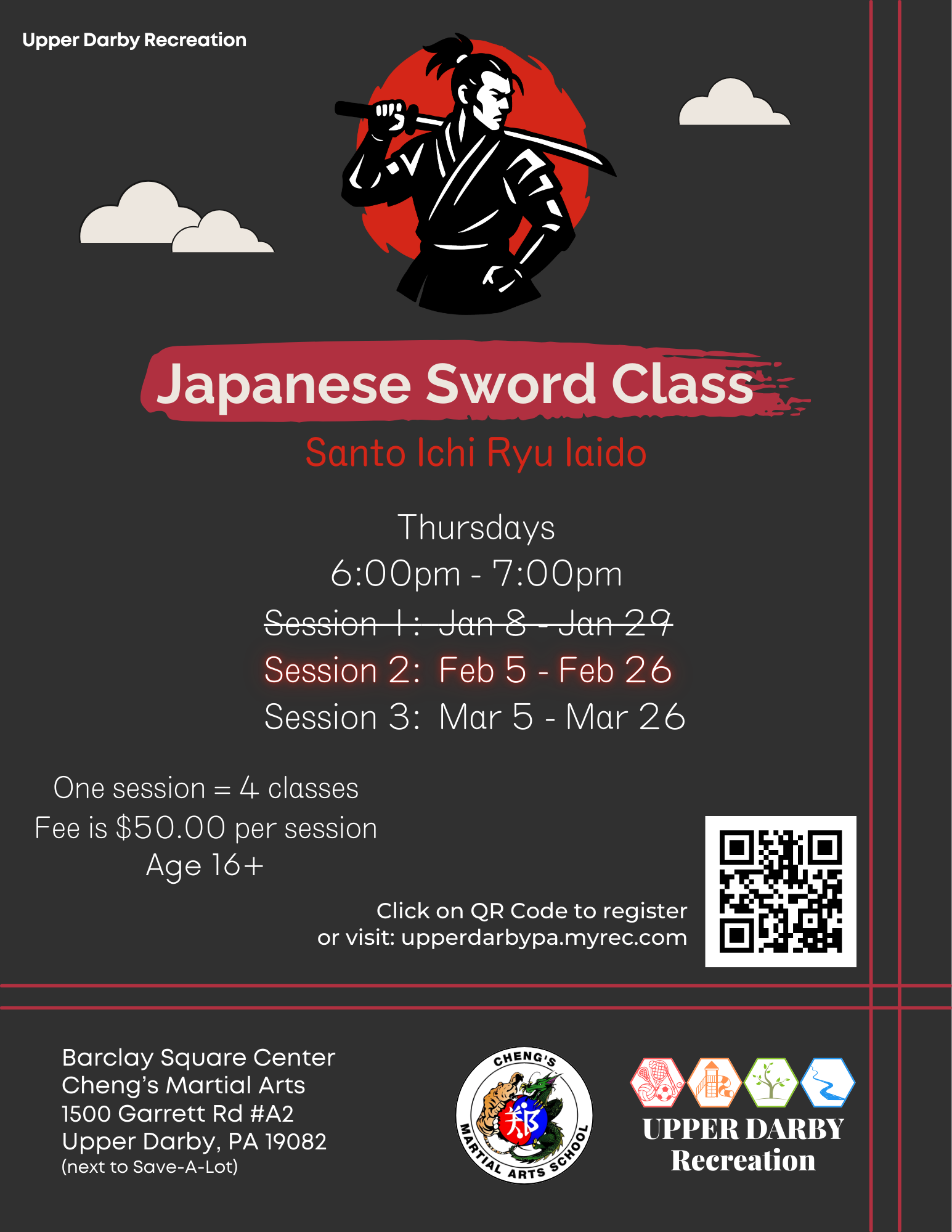 ![]() Japanese Sword for ages 16+ Registration Link: upperdarbypa.myrec.com | ![]() Spring Tennis Clinic No Registration Required |