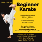 | BEGINNER KARATE (Age 7+) - Our Children’s Program emphasizes the importance of perseverance and independence. Students move at their own pace - working to earn their rank through dedication and proving their knowledge. Classes are filled with exercise, drills and application of their skills through forms, self-defense and sparring. Begin building your child’s independence and self-confidence today! Classes are held on Monday & Wednesday, 5:30pm - 6:30pm OR Tuesday & Thursday, 6:30pm - 7:30pm. |