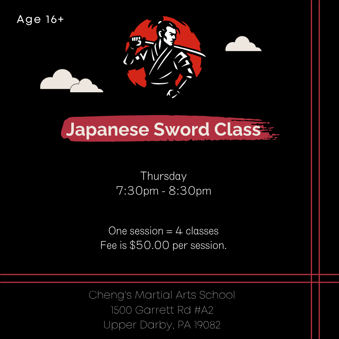 | JAPANESE SWORD: Santo Ichi Ryu Iaido (Age 16+) - Santo Ichi Ryu laido is a traditional and elegant style of a Japanese non-combative sword art in which the practitioner strives to harmonize the techniques, philosophy and artful practice to achieve a higher state of awareness and mindfulness. Classes are held on Thursday, 7:30pm - 8:30pm. |