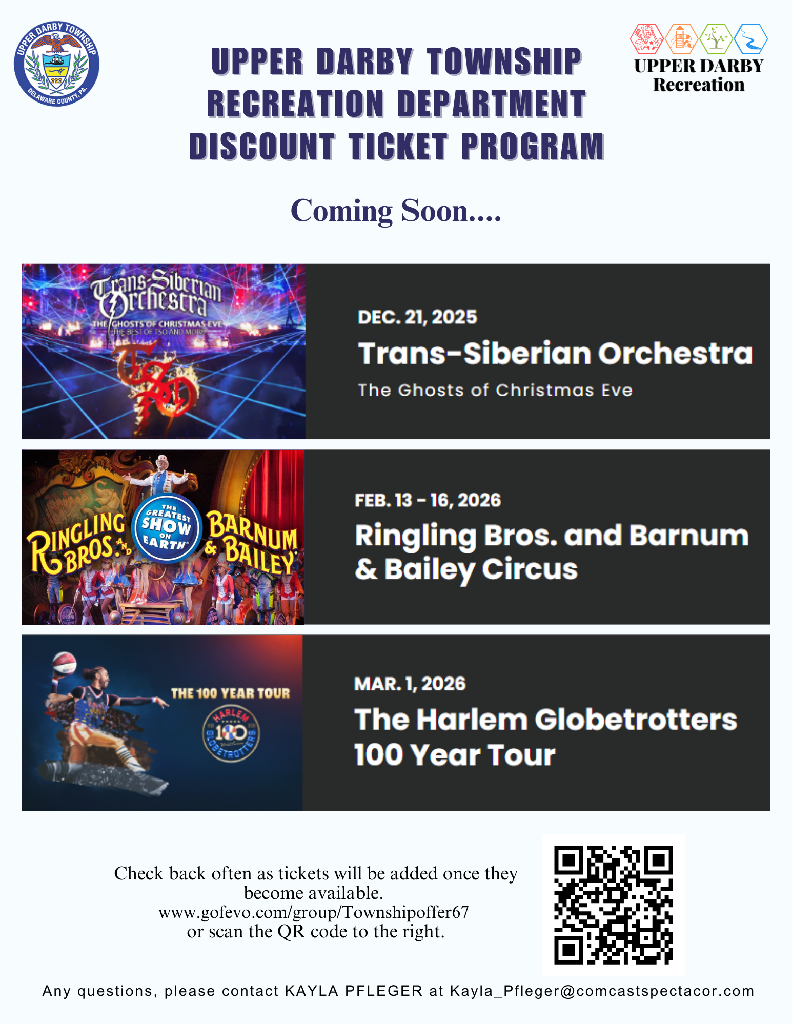 Tickets for the following attractions are available for purchase at the Upper Darby Township Building by check, money order or credit/debit card*.