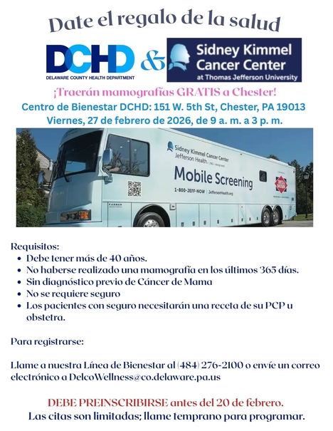 Where: DCHD Wellness Center, 151 W. 5th Street, Chester, Pa 19013