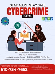Join Upper Darby Senior Center and RSVP Volunteers on Wednesday, January 21, 2026, at 12:30pm for the presentation: How to Recognize Digital Scams and Fraud.