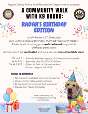 It’s K9 Radar’s 5th Birthday!! Join us for a special Birthday-themed “Walk with Radar.”
