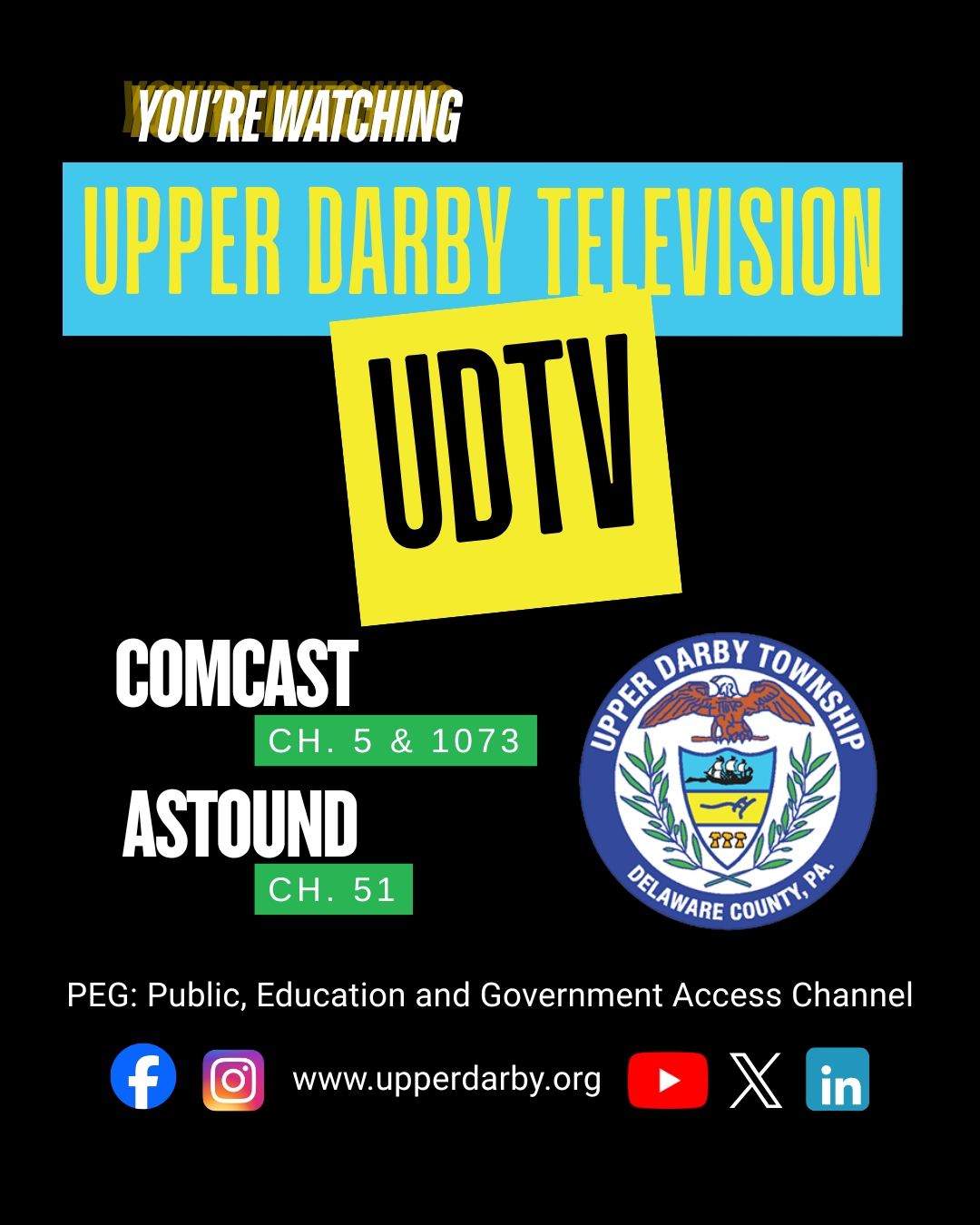 Upper Darby Township is proud to announce the launch of its first-ever PEG Channel (Public, Education, and Government).
