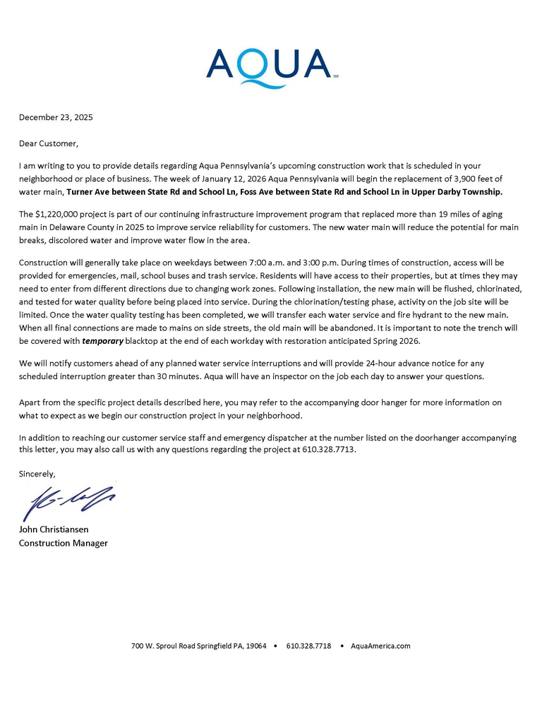 Where: Turner Ave between State Rd and School Ln, Foss Ave between State Rd and School Ln