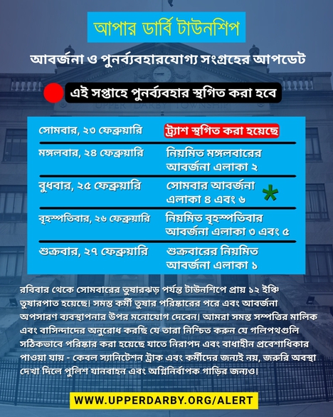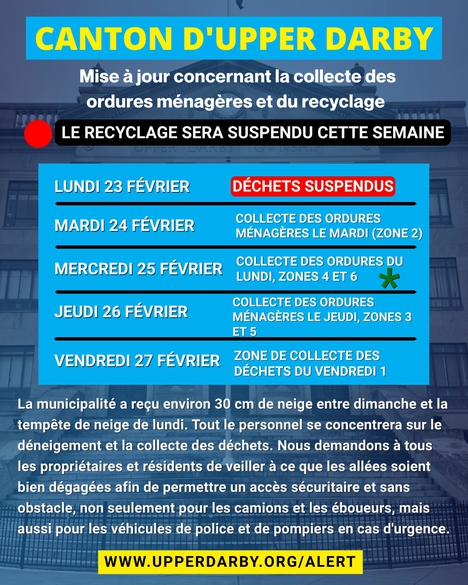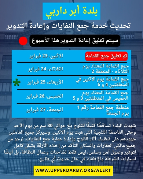 For the latest information, residents should visit the Upper Darby Township website and follow official Township social media accounts.