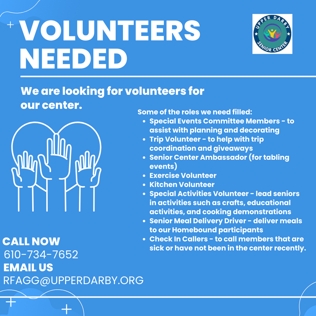 Volunteers Needed at Upper Darby Senior Center