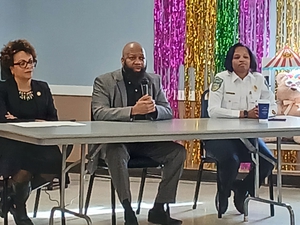 Upper Darby Mayor Ed Brown, Pennsylvania State Representative, Gina Curry, and Upper Darby Police Lieutenant, Laina Stevens gathered at the Watkins Senior Center in front of a packed house.