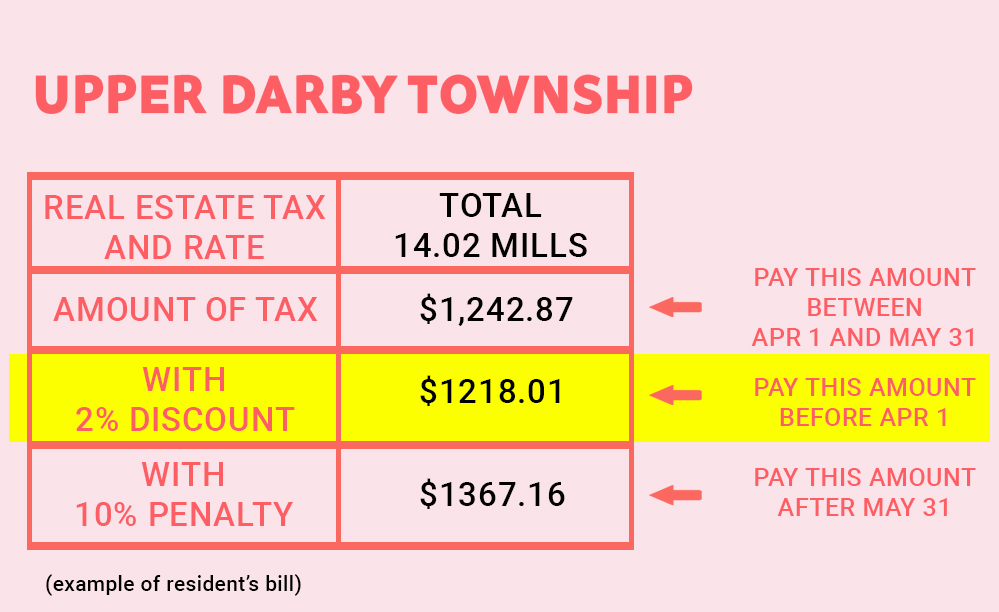 Friendly reminders from the Upper Darby Tax Office regarding payment