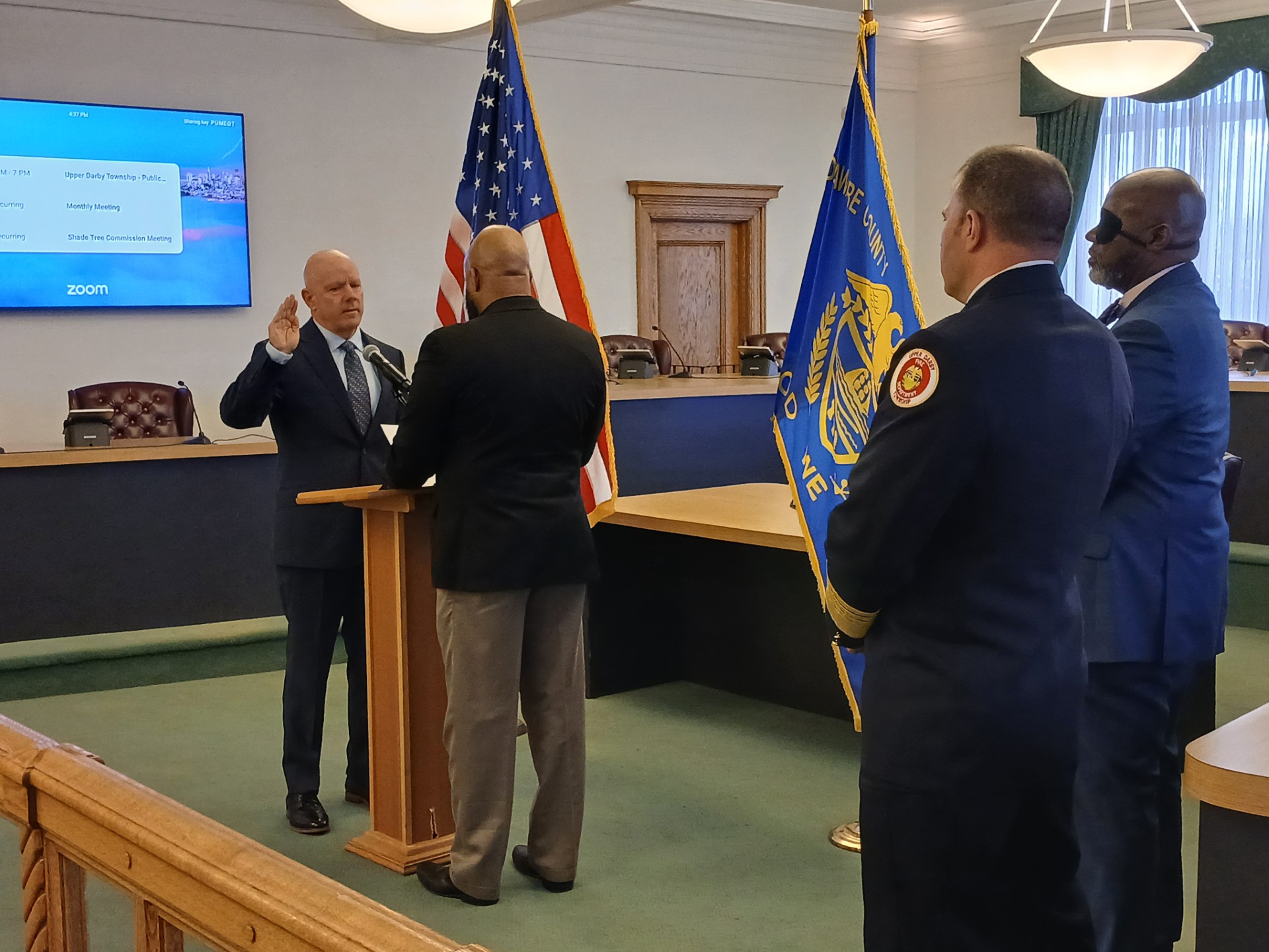Upper Darby Mayor Ed Brown did the swearing in for Callahan who returns home to Upper Darby Township. He spent his previous 33 years serving the District of Columbia in various roles including Deputy Fire Chief.