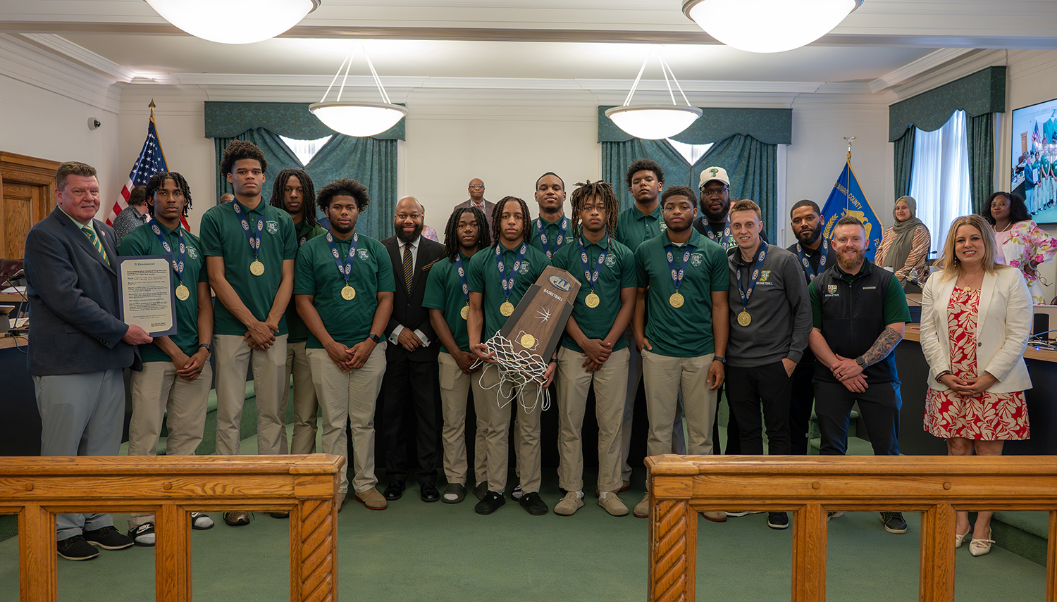 Upper Darby Township Honored the Monsignor Bonner-Archbishop Prendergast 2026 PIAA 5A Boys State Basketball Championship Team at the Wednesday, April 15th Township Council Meeting.