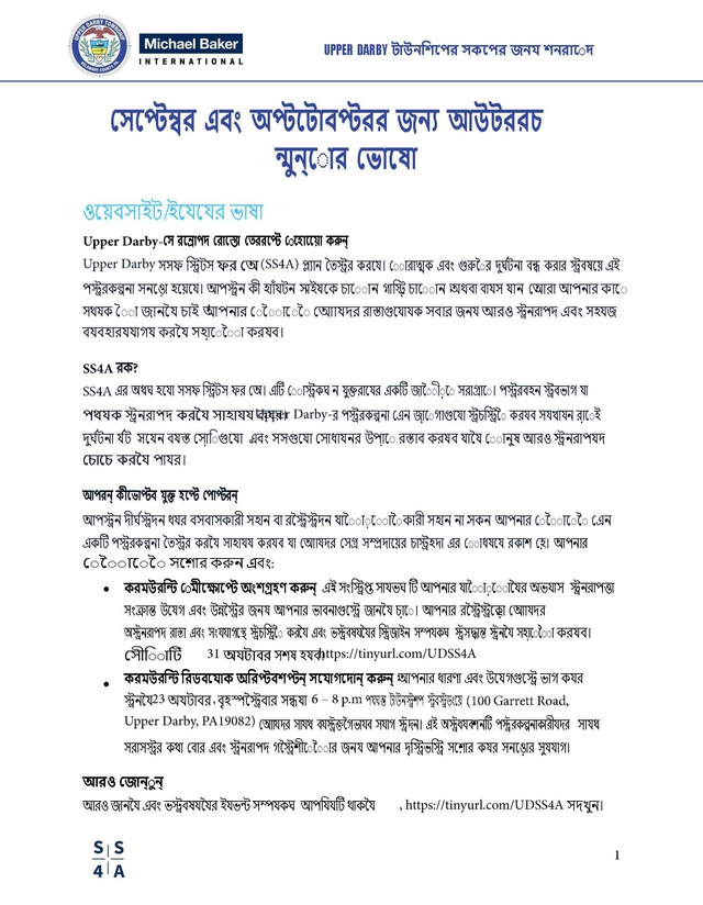 Upper Darby Safe Street For All (SS4A)- Bengali